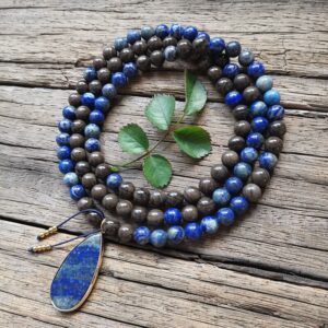Collier Mala en Lapis Lazuli & Bronzite : Boostez votre Confiance en Soi ! Découvrez le puissant collier Mala « Confiance en Soi », une combinaison de couleurs audacieuses de pierres bleues Lapis Lazuli et de Bronzite. Cette pièce unique est plus qu’un simple accessoire, c’est un beau rappel de la confiance et du courage qui résident…