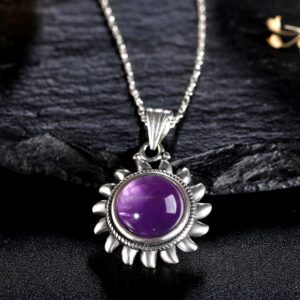 Splendide Pendentif Soleil en Améthyste, Bijou Unique pour Passionnés d’Astrologie. Découvrez la magnificence de notre magnifique pendentif soleil, agrémenté d’une superbe pierre d’améthyste. Cet accessoire au joli design est bien plus qu’un simple bijou gracieux. Son améthyste, pierre connue pour ses bienfaits, agit comme une source d’équilibre et infuse de l’énergie positive en vous tout…