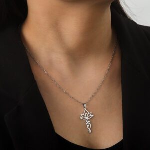Pendentif Exquis: Fleur de Lotus Étincelante, Symbole de Pureté et D’élégance Envie d’un bijou qui se démarque ? Le pendentif « Fleur de Lotus Étincelant » est l’accessoire idéal pour ajouter une touche d’éclat à votre tenue du jour. Finement confectionné dans de l’argent éthéré, cette fleur de lotus est un clin d’œil à la force tranquille…